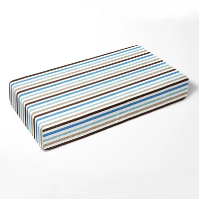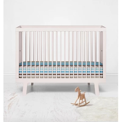 Bacati – Pin Stripes Print Aqua Teal Beige Chocolate Crib Fitted Sheet made from 100 percent cotton percale fabric. Crib sheet has reinforced corners and elastic on corners for secure fit. It is machine washable and gets softer with every wash. It coordinates well with Bacati Mod Diamonds Stripes Aqua Teal Beige Chocolate bedding collection. Sleep Safely, Little One When putting baby to sleep, Bare is Best in the crib. Use a firm, tight-fitting mattress and remove pillows, quilts, comforters, toys and other soft items. We made it better so you can feel better.