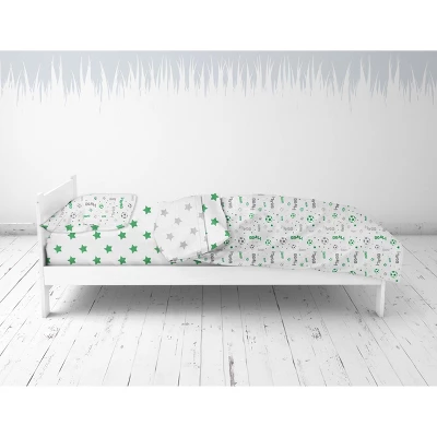 Bacati – Soccerball Green/Gray Muslin 4 Pc Toddler Bedding Set