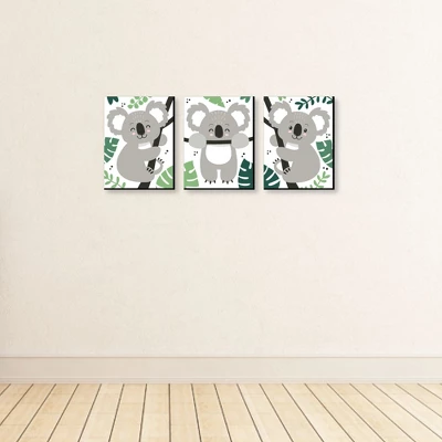 Koala Cutie Wall Art Set INCLUDES 3 ready-to-hang Bear & Eucalyptus themed panels and non-marking wall mounts for easy hanging. Koala Cutie artwork is perfect for a nursery, kids’ room, or playroom. Koala Cutie Wall Art & Kids Room Decor SIZE each 10 inches high x 7.5 inches wide x .5 inches thick. Bear & Eucalyptus lightweight art prints will arrive ready to use – no frame needed. The black edge gives each print a modern, finished look. EASY TO HANG: Simply attach a non-marking wall mount (included) to each corner of a Koala Cutie art panel and press to hang in desired location. Wall mounts are repositionable, so you can redesign your artwork display at any time. PREMIUM HOME DECOR: 3-piece Koala Cutie Wall Art Set is professionally printed on thick material with a black edge. You will not need to frame this set of Bear & Eucalyptus room decor. Each standout print is ready to hang and will add a contemporary touch to any room. MADE IN THE USA: Koala Cutie Nursery Wall Art & Kids Room Decor is designed and manufactured at our Wisconsin facility using materials that are Made in the USA.