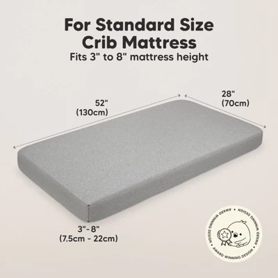 - SnugFit bands hold baby sheets in place & fit standard-size crib mattresses 52″x28″ (3″-8″ height)