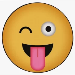 Deerlux Emoji Style Round Funny Smiley Face Kids Area Rug, Winky Tongue Out Emoji Rug, 24” X 24”