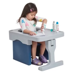 Costway Kids Table Chairs Set With Storage Boxes Blackboard Whiteboard Drawing GreyNature