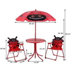 Costway Kids Patio Set Table And 2 Folding Chairs W/ Umbrella Beetle Outdoor Garden Yard