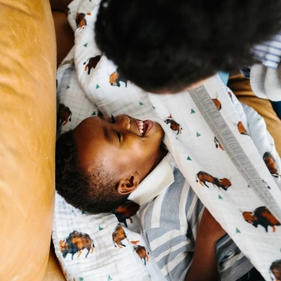 Our classic quilt supersized! Our cotton muslin Big Kid Quilt is perfect for a nursery throw, larger playtime blanket or for just cuddling on the couch. Featuring four breathable layers of soft cotton muslin that get softer with every wash and decorated with our signature prints and hues, this versatile throw-sized quilt is an everyday household essential.