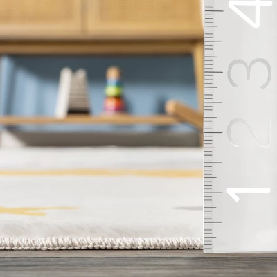 Perfect for a nursery, playroom, or any area needing some fun, this area rug features an exciting piece for children. The simple yet adoring design is ideal for cozying around and making memories with your loved ones. Enjoy the rich interplay of color and buttery soft feel. Made from durable fibers, this rug pairs wonderfully for your child’s oasis. Make the most out of your time at home with our pet-friendly and easy to clean area rugs.