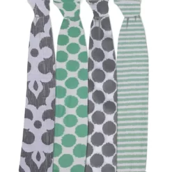 Bacati – Liam Aztec Print Aqua/Orange/Navy Triangles Muslin Swaddling Blankets Set Of 4