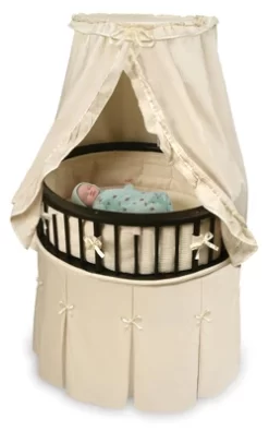 Badger Basket Elite Oval Baby Bassinet With Canopy – Espresso/Ecru