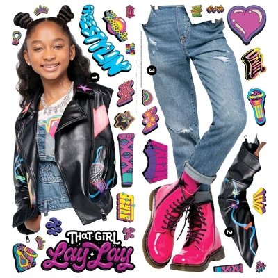She came out the app… and now she s here to brighten your day! Officially licensed Nickelodeon That Girl Lay Lay Giant Peel and Stick Wall Decals are here! Featuring the one and only Lay Lay with her beloved space buns and overalls, she is accompanied by small graphics and the hit Nickelodeon show s logo. Installing this set of decals is as easy as PEEL, STICK, DONE! Perfect for any hangout space or bedroom, as Lay Lay says, you re gonna have so much fun with this!